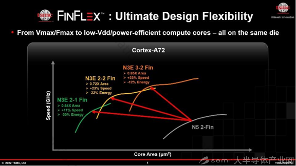 FINFLEX創(chuàng)新使N3E實(shí)現(xiàn)了從N5的全一代微縮,為移動(dòng)和HPC應(yīng)用提供了完整的平臺(tái)支持,并將具有更強(qiáng)的性能、功率和較低的工藝制程復(fù)雜性。