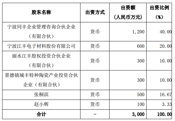 8月19日,寧波江豐電子材料股份有限公司(以下簡稱“江豐電子”)發布公告稱,為了實現戰略發展目標,推動半導體材料和裝備事業的發展,提升綜合競爭力,公司擬與寧波同豐企業管理咨詢合伙企業(有限合伙)、麗水江豐股權投資合伙企業(有限合伙)、景德鎮城豐特種陶瓷產業投資合伙企業(有限合伙)、張桐濱先生、趙小輝先生共同投資設立寧波芯豐精密科技有限公司(以下簡稱“芯豐精密”)。
